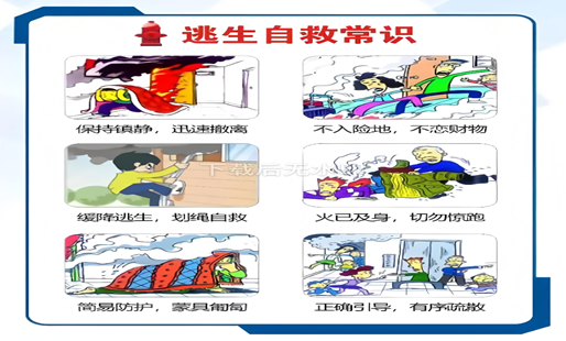 (一)保持冷静:迅速判断火源与逃生路线,勿贪恋财物。